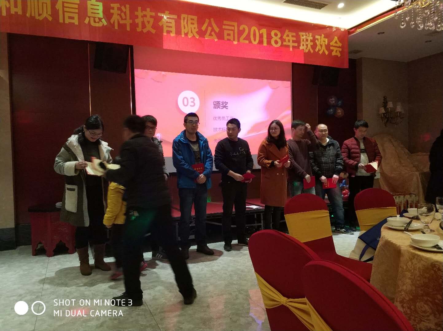 2018年2月10日合肥和順信息科技有限公司2018年聯(lián)歡會(huì)在尚爵宴會(huì)酒店圓滿結(jié)束!聯(lián)歡會(huì)以員工才藝展示 領(lǐng)導(dǎo)致詞 現(xiàn)場(chǎng)頒獎(jiǎng) 精彩游戲 晚宴等形式組成,現(xiàn)場(chǎng)總經(jīng)理張總現(xiàn)場(chǎng)對(duì)過去做了總結(jié),未來做了規(guī)劃,感恩大家,希望和順的未來越來越好?,F(xiàn)場(chǎng)還有綜合部的開場(chǎng)歌曲,明天會(huì)更好;外包部歌神的歌曲,銷售部精彩的現(xiàn)場(chǎng),惹來現(xiàn)場(chǎng)一片歡呼。大家也積極參與互動(dòng)游戲,除了這些,公司對(duì)2017年度的為公司奉獻(xiàn)的員工評(píng)出了優(yōu)秀員工4名 技術(shù)標(biāo)兵4名;綜合部也被評(píng)為“先進(jìn)集體稱號(hào)”?,F(xiàn)場(chǎng)還抽取了一二三等獎(jiǎng),沒有獲得獎(jiǎng)項(xiàng)的朋友們也獲得的陽光普照獎(jiǎng)。大家吃著玩著拿著,晚宴結(jié)束后大家都開心的滿載而歸。聯(lián)歡會(huì)在一片歡笑海洋中圓滿結(jié)束了。